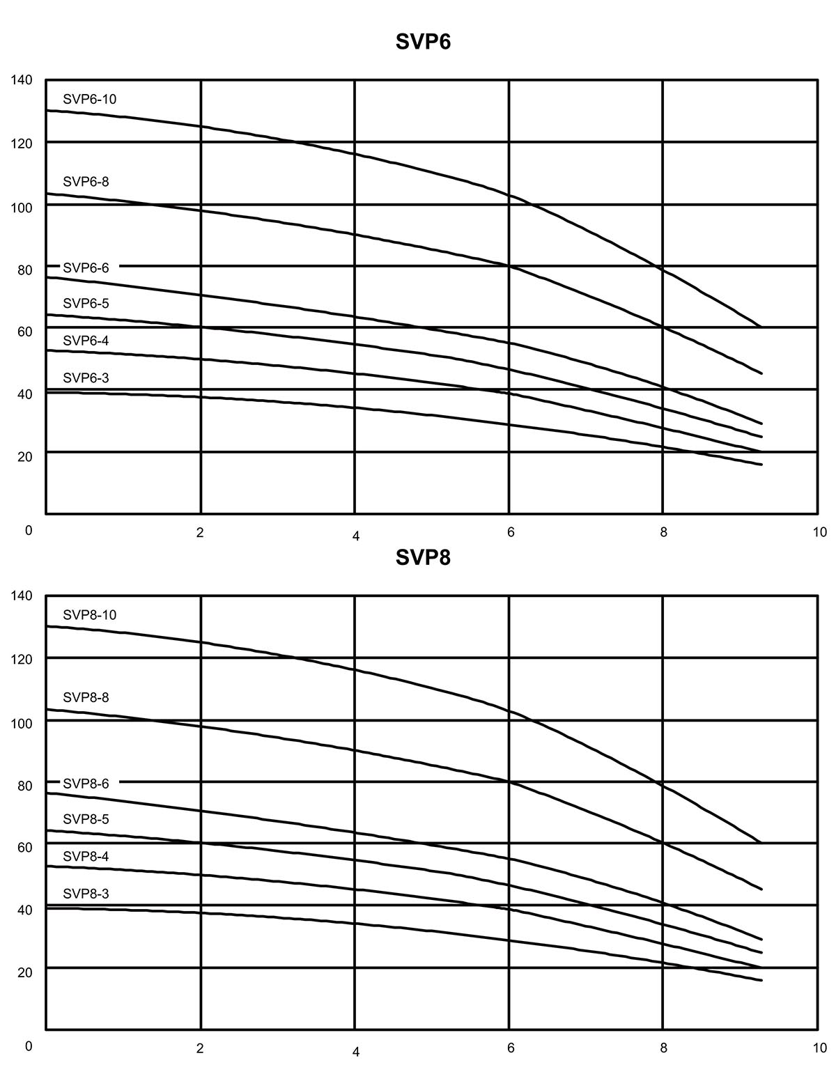 | SVP6-10 | 32×32 | 4 | 5.5 | 130 | - | - | - | - | - | 114 | 109 | 103 | 92 | 86 | 73 | 60 | - | - | - | - | - | - | |||