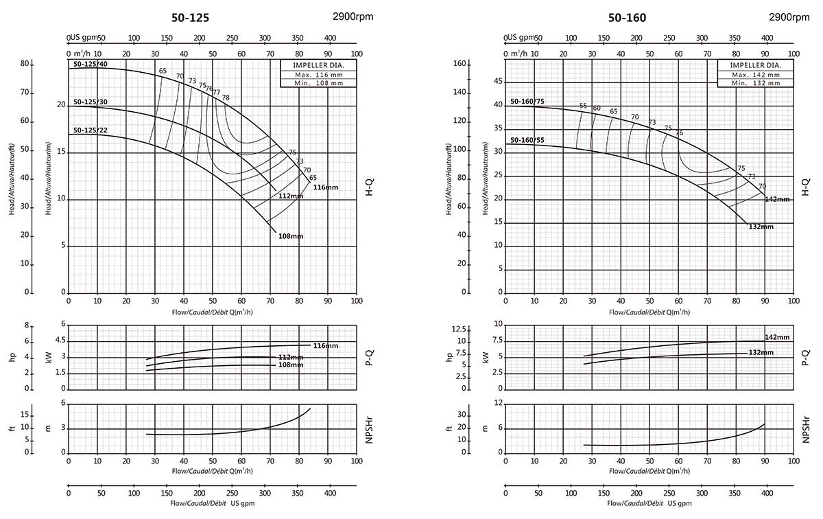 | XA 50-125/30 | 65x50 | 130 | 3 | 4 | 20 | - | - | - | - | - | - | 18.8 | 18 | 17 | 15.6 | 11 | - | - | - | - | - | - | - |