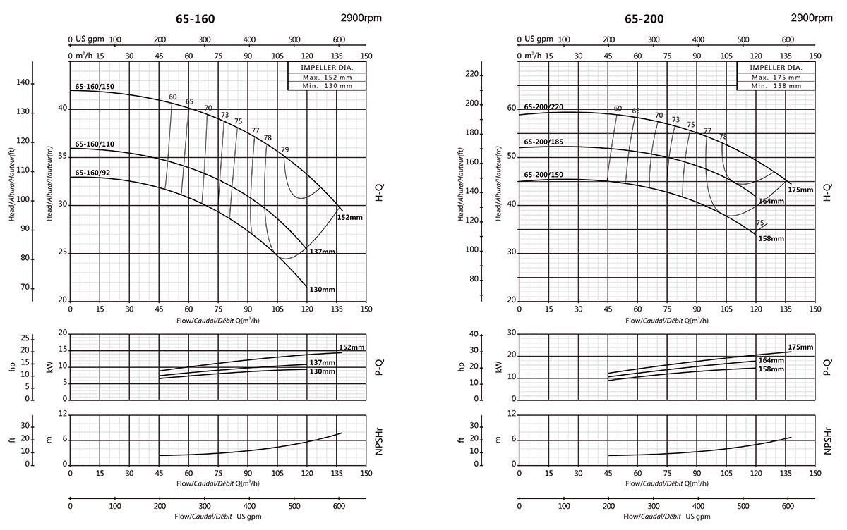 | XA65-160/92 | 80x65 | 155 | 9.2 | 12.5 | 33 | - | - | - | - | - | - | - | - | - | 31.5 | 30 | 28 | 27.1 | 24 | 21.5 | - | - | - |