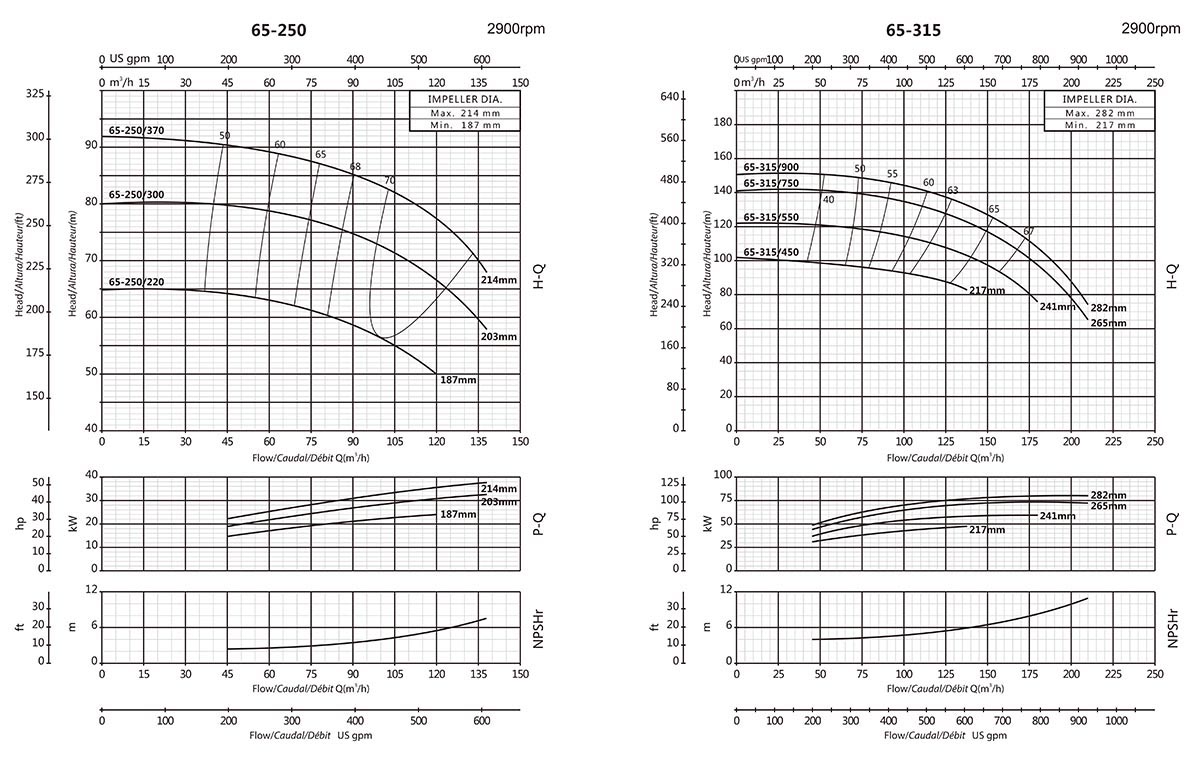 | XA65-315/550 | 80x65 | 290 | 55 | 75 | 122 | - | - | - | - | - | - | - | - | - | 119.2 | 117.4 | 115.7 | 114.5 | 112.5 | 110 | 103 | 76 | - |